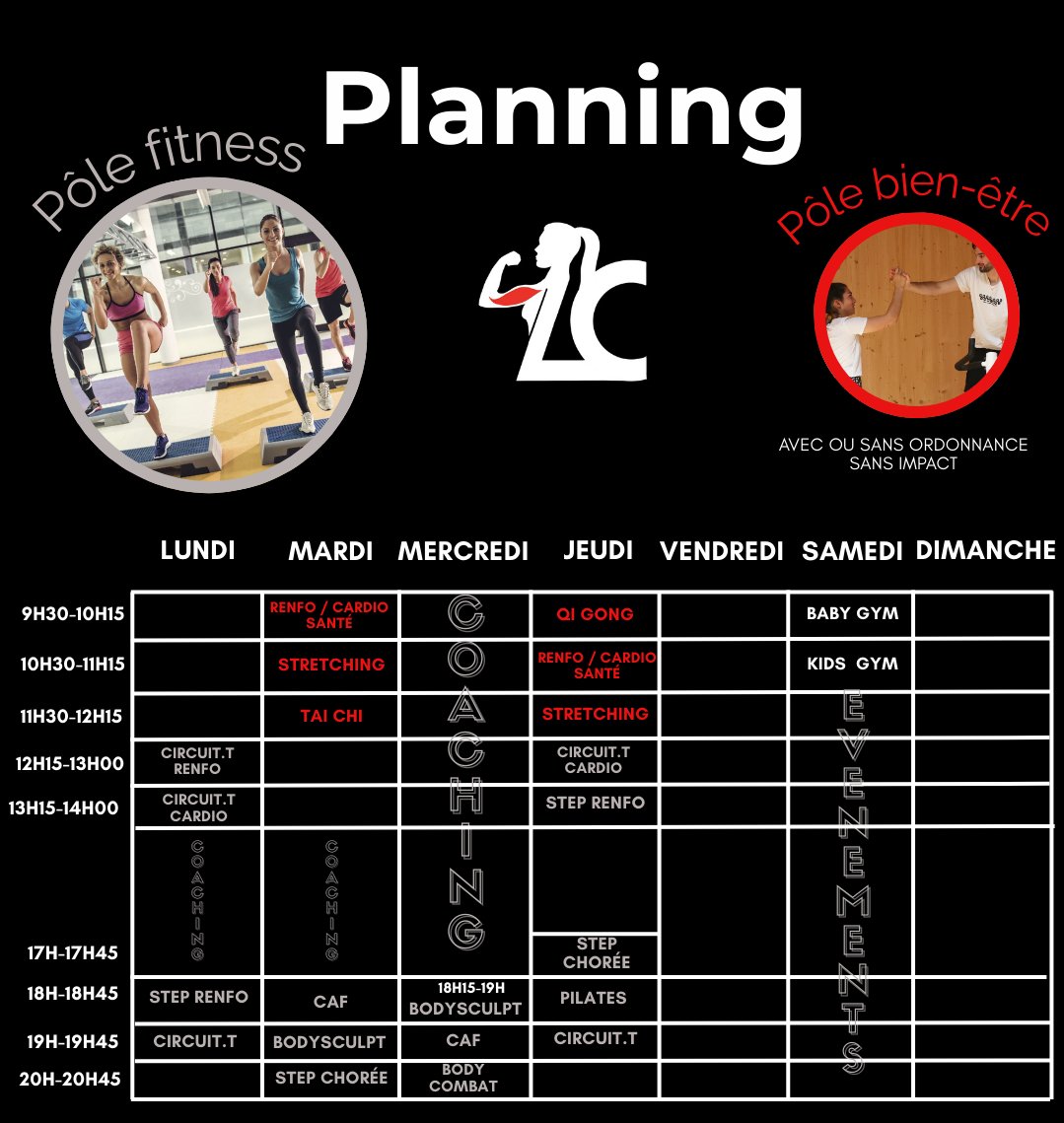 - Le pôle Bien-être : Dédié à une pratique douce et équilibrée : gym douce, renforcement sans impact, amélioration posture/mobilité…